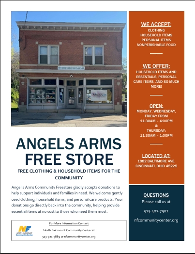 With this in mind, we have developed our programs around supporting youth development and life enrichment classes for the North Fairmount Community. We have developed a senior program that offers interaction with others and to stay engaged. We also offer other resources through our community service programs for those in need with our Angel’s Arms Free Store, social worker services, food distribution, and affordable housing.